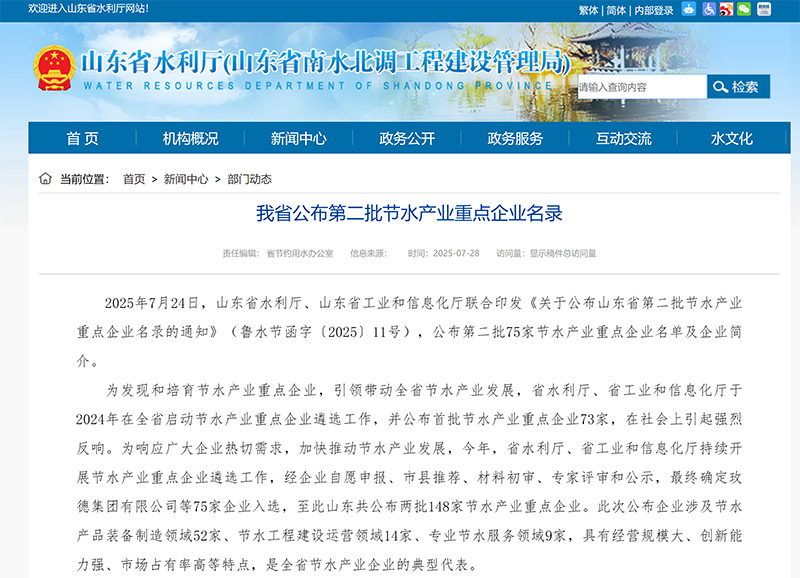 2025年7月24日,我司通過山東省第二批節(jié)水產(chǎn)業(yè)重點企業(yè),為有關部門認可我們的工作...